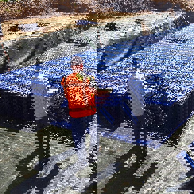 Het modulaire krattensysteem kan in elke willekeurige vorm opgebouwd worden. ‘Als we lange lengtes willen, kunnen we ‘m met een of meerdere lagen opbouwen. Wat maar nodig is voor het aantal kuub en haalbaar voor de beschikbare diepte. Er zijn allerlei extra modules beschikbaar om aansluitingen te maken op het systeem. Op elk willekeurige plek kun je de Tegra kolk of een toevoerbuis plaatsen. Het is vooral de combinatie van die producten die optimaal werkt.’