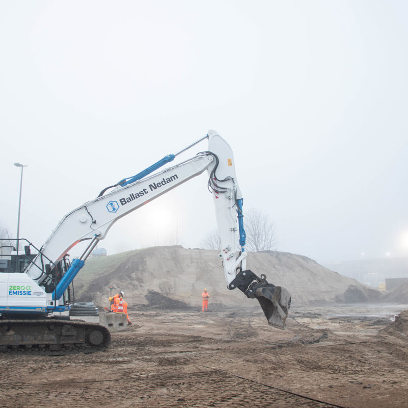 “Vandaag halen we het asfalt eraf en breken we de weg open. Dan komt er grondwerk bij kijken: we maken ruimte voor de onderdoorgang. Aan beide kanten staan twee graafmachines met transport. Kranen vullen de dumpers en laagsgewijs werken we naar elkaar toe tot we op de nullijn zijn. Dan is fase één klaar. In fase twee doet collega Heijmans onderzoek naar de grond die onder de onderdoorgang ligt. Het laatste stukje is belangrijk voor het inschuiven: na het uitgraven blijft zachte grond over, daar kun je geen kunstwerk op zetten. Dat vullen we met goed zand. Dan staat alles klaar voor het inschuiven.”