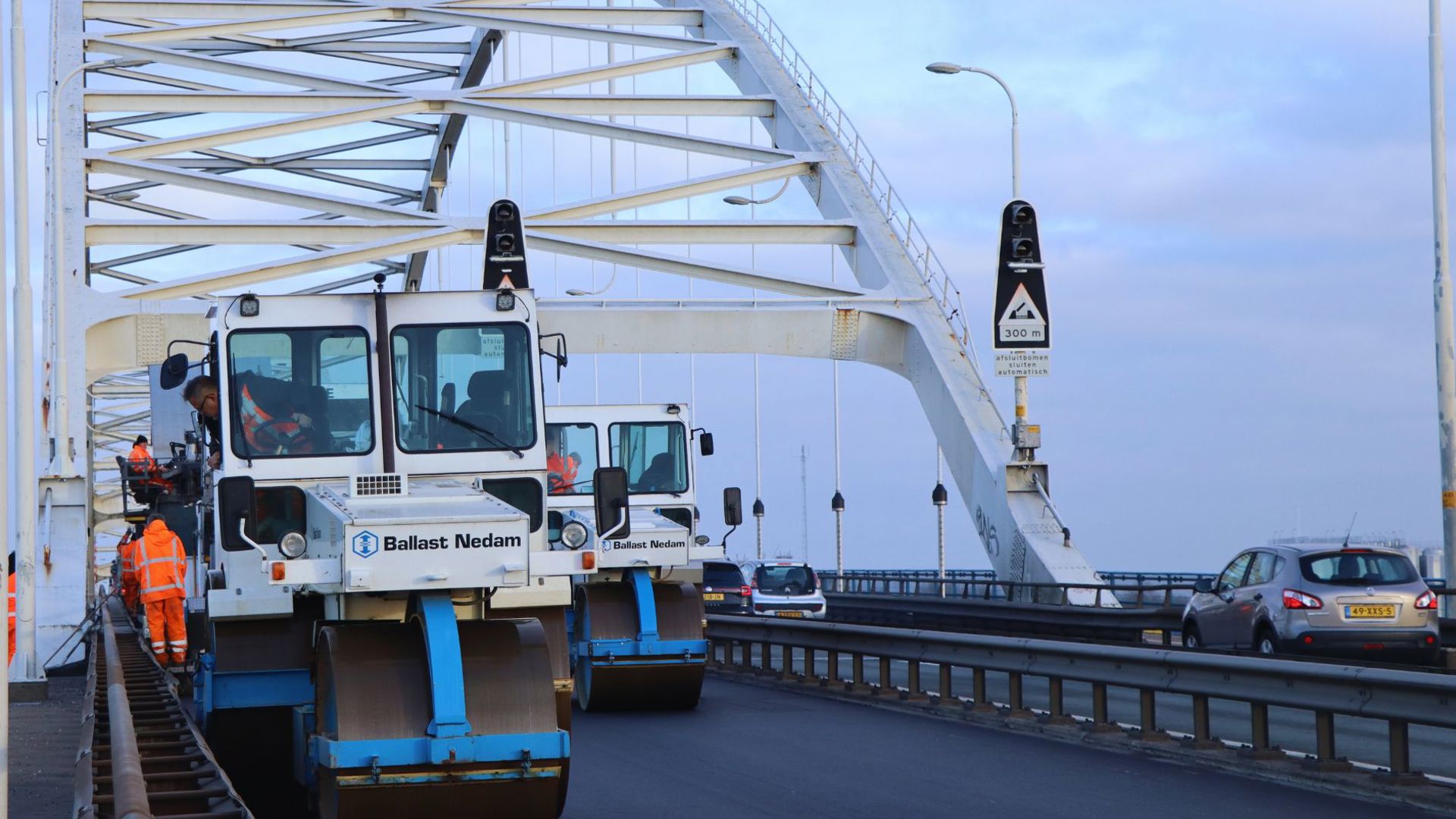 Een deel van het weekend vanaf de avond, was de A27 afgesloten voor al het verkeer vanuit Utrecht. Op het brugdek inclusief de aanbruggen hebben we het oude asfalt gefreesd en vervangen waarna er een nieuwe deklaag is aangebracht met gemodificeerde bitumen. Dankzij het gebruik van dit type bitumen is het asfalt beter bestand tegen bijvoorbeeld rafeling (steenverlies) door toedoen van zwaar vrachtverkeer en (winterse) weersomstandigheden. Tevens hebben we de markering opnieuw aangebracht.